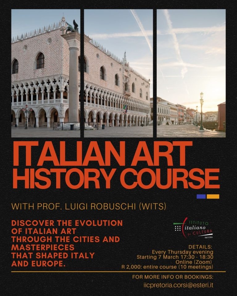 For more info and bookings: iicpretoria.corsi@esteri.it